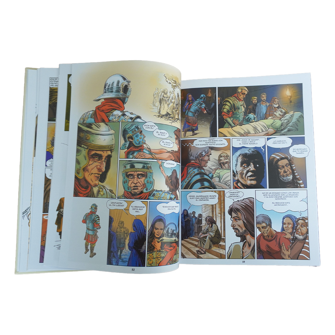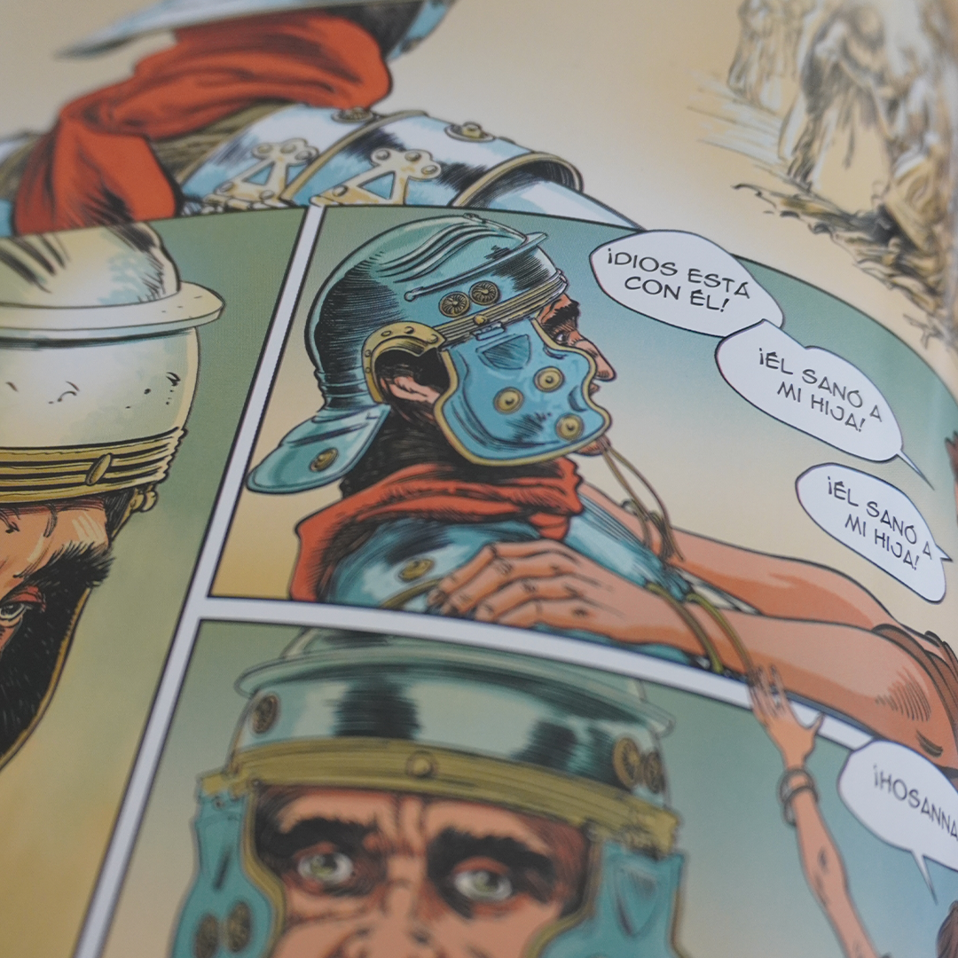 Después de cuatro años de trabajo, el ilustrador Olivier Drion nos entrega en esta obra una visión contemporánea del Evangelio de Jesús el Cristo. Algunos testigos de este relato son personajes ficticios, pero este libro de historietas sigue fielmente el relato de los Evangelios.